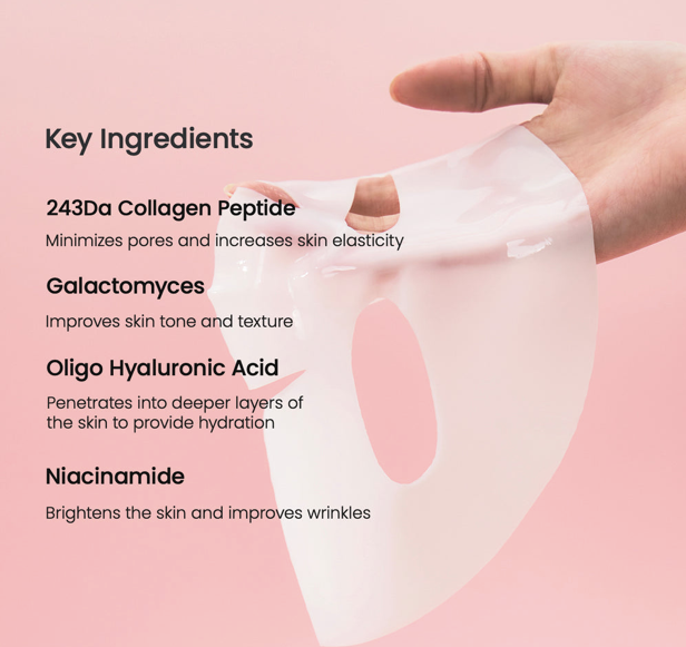 Ultralaag moleculair collageen maximaliseert de penetratie en absorptie van het product in de huid. Het verfijnt vergrote poriën, verbetert de huidelasticiteit direct na het aanbrengen en verzacht zichtbaar fijne lijntjes en rimpels.