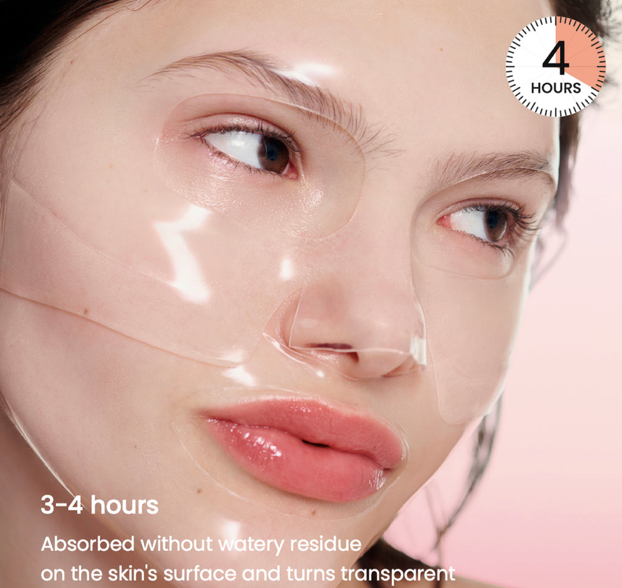 Nadat je de huid hebt voorbereid met toner of serum, breng je het masker aan en laat je het 3-4 uur intrekken, of totdat het transparant wordt.