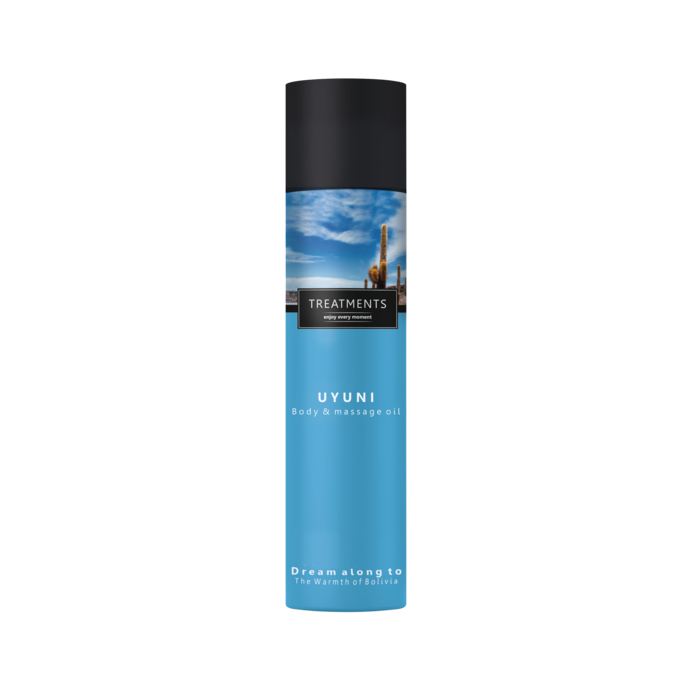 De heerlijk geurende Uyuni body & massage olie(150 ml) op basis van abrikozenpit en amandel olie die de huid verzacht, voedt en beschermd. Ervaar de heerlijke warme Boliviaanse geuren, gecombineerd met de frisse eucalyptus en droom mee naar de eindeloze zoutvlaktes van de Salar de Uyuni.