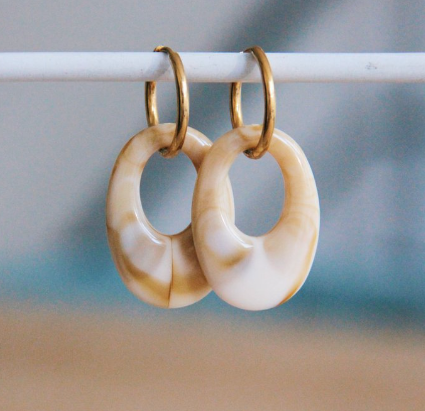 Edelstaal oorbel met harsdruppel – gemengd/goud