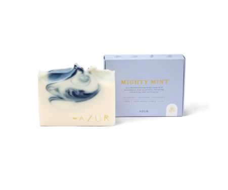 Mighty Mint bevat ook kaolienklei, wat je huid op milde wijze reinigt. Deze zeep zal je verbazen, en na slechts één gebruik kun je niet meer zonder! Ingrediënten: Verzeepte olijfolie, verzeepte kokosolie, verzeepte cacaoboter, verzeepte zoete amandelolie, water, glycerine, verzeepte sheaboter, verzeepte ricinusolie, essentiële eucalyptusolie, essentiële pepermuntolie, indigobladpoeder, kaolienklei, gedroogde jasmijnbloemen, gedroogde eucalyptusbladeren, maanzaad.