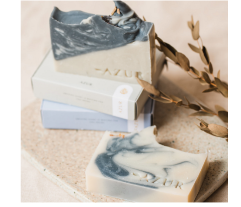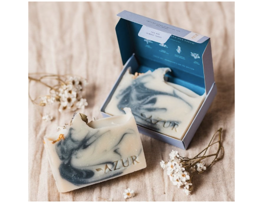Een echt verfrissende zeep met geuren van essentiële oliën van eucalyptus en pepermunt. De prachtige blauwe kleur komt van de bladeren van de Indigofera Tinctoria plant.